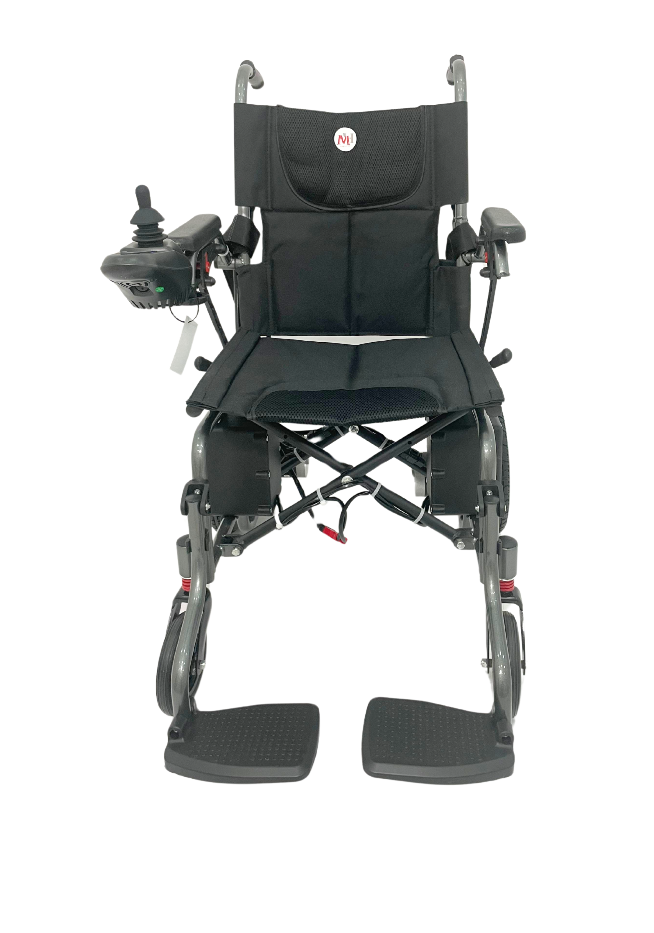 Comfortabele elektrische rolstoel met een topsnelheid van 6 km/u en een bereik van 20 km. Lichtgewicht en opvouwbaar, geschikt voor dagelijks gebruik. Max. draaggewicht 120 kg.